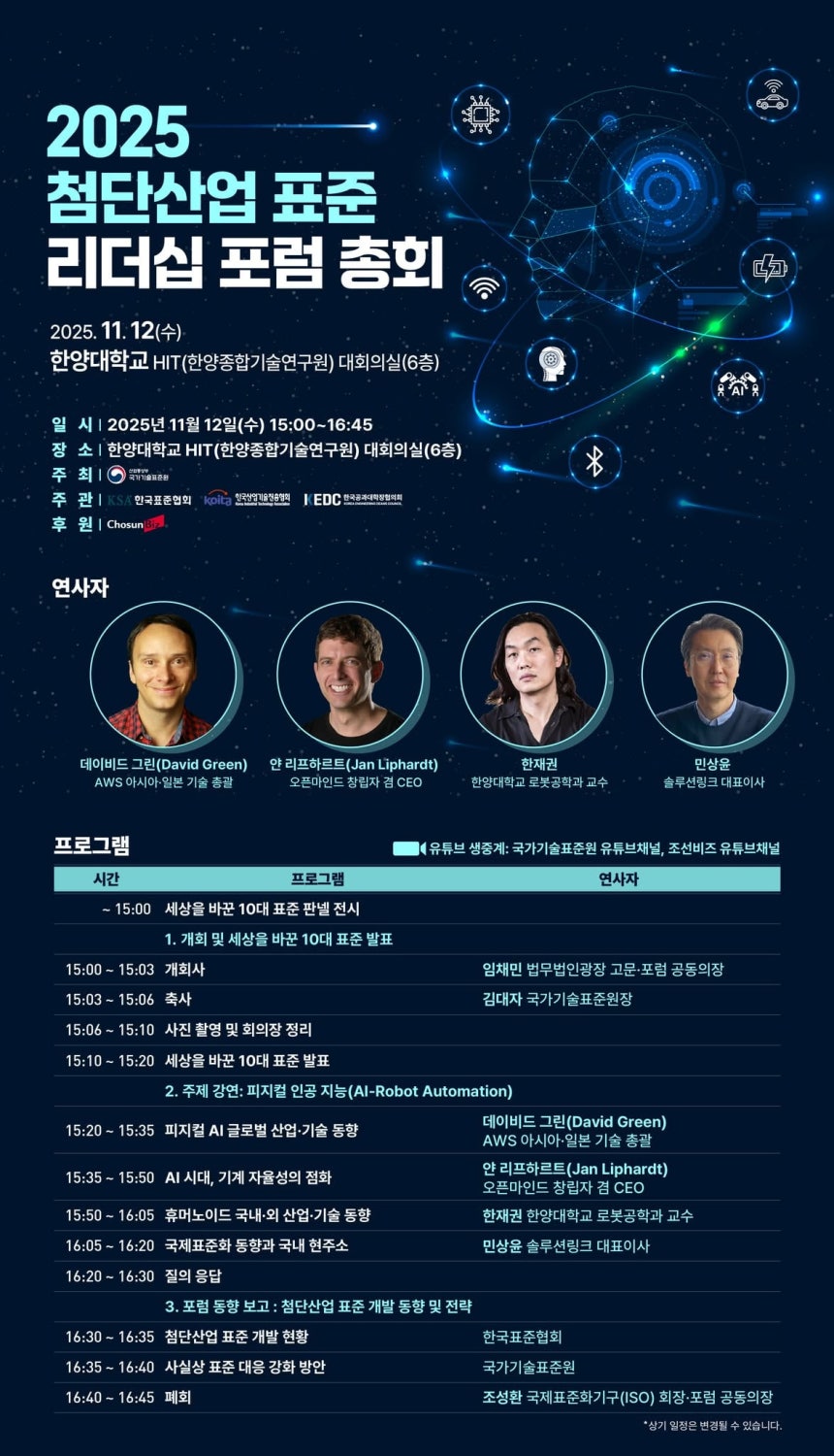 [±â°£ : 2025, ÁÖÃÖ¡¤ÁÖ°ü : »ê¾÷Åë»óÀÚ¿øºÎ ±¹°¡±â¼úÇ¥ÁØ¿ø/Çѱ¹Ç¥ÁØÇùȸ, Çѱ¹»ê¾÷±â¼úÁøÈïÇùȸ, Çѱ¹°ø°ú´ëÇÐÀåÇùÀÇȸ]
